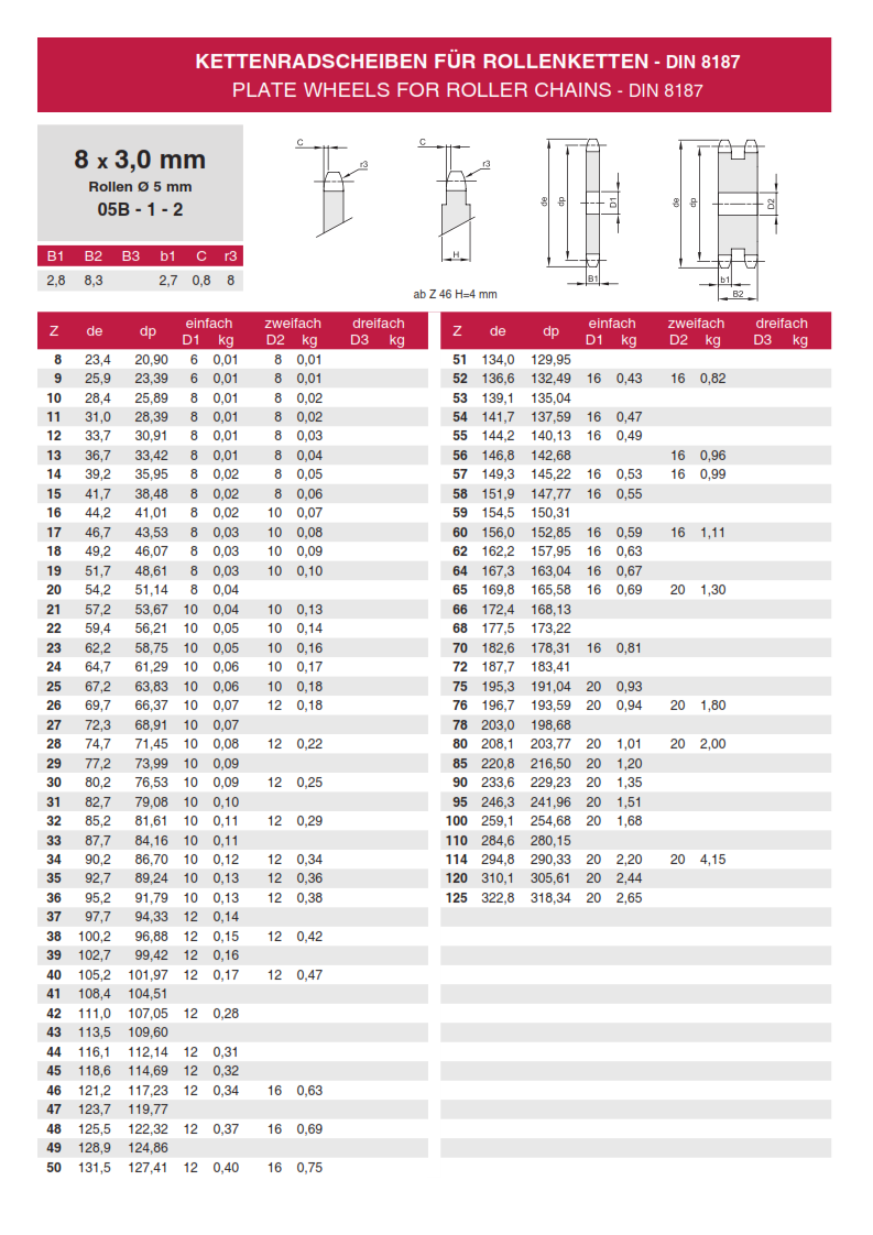 1/2” x 5/16” 12,7 x 7,75 mm Rollen Ø 8,51 mm 08B - 1 - 2 – 3